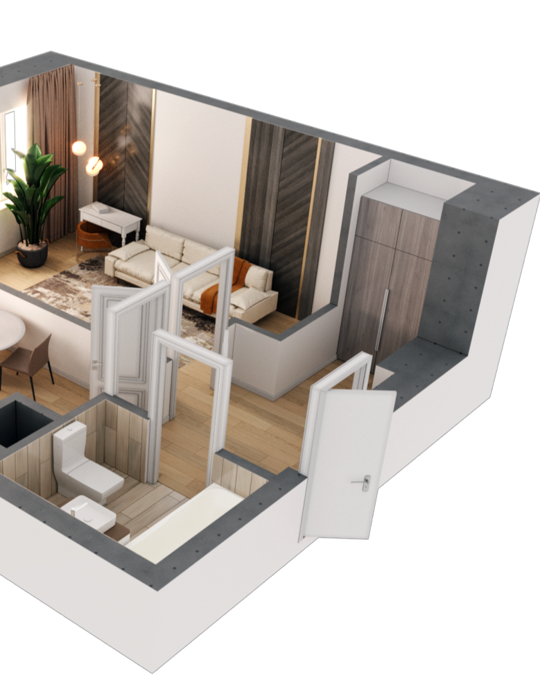 Предоставим план зонирования и расстановки мебели, план перегородок с электрикой и сантехникой, 3D визуализацию чертежа, а также расчет стоимости черновых и чистовых работ, необходимых материалов, сантехники и электрики.